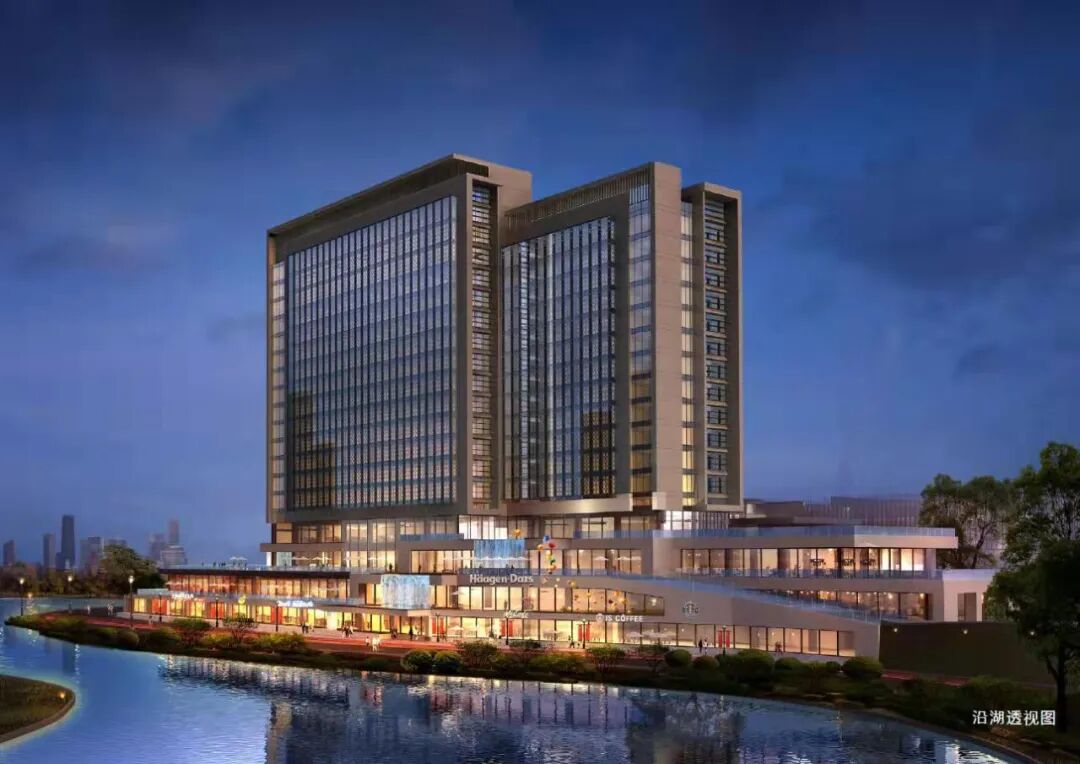 酒店总占地面积36000m2,总建筑面积68500m,容积率1.58;酒店设有住宿、餐饮、宴会、会议、休闲娱乐、运动健身等业态;建筑结构总高71.5米,地下两层,地上十六层;设有客房钥匙间333间,设有中餐厅、全日餐厅,位于酒店主楼1楼;会议室共设18个,分布于酒店主楼2、3层,可分别承接20人至40人规模会议接待;宴会厅位于酒店裙楼1楼,可同时容纳1000人就餐;设置333个车位,其中地上车位112个,地下停车位221个;地下二层设酒吧街,酒店设备区,地下车库;地下一层设泳池、SPA、健身等运动区,KTV娱乐,多功能会议厅,酒店后勤服务区,地下车库;一层包括酒店大堂,大堂吧,中餐厅,全日餐厅,千人宴会厅;三至七层主要为客房,每层另设会议室1间;八至十四层均为客房,十五至十六层为套房及行政酒廊层,包括总统套房、总经理公寓、豪华大床套房、行政套房及行政酒廊,酒店可同时容纳500人住宿。