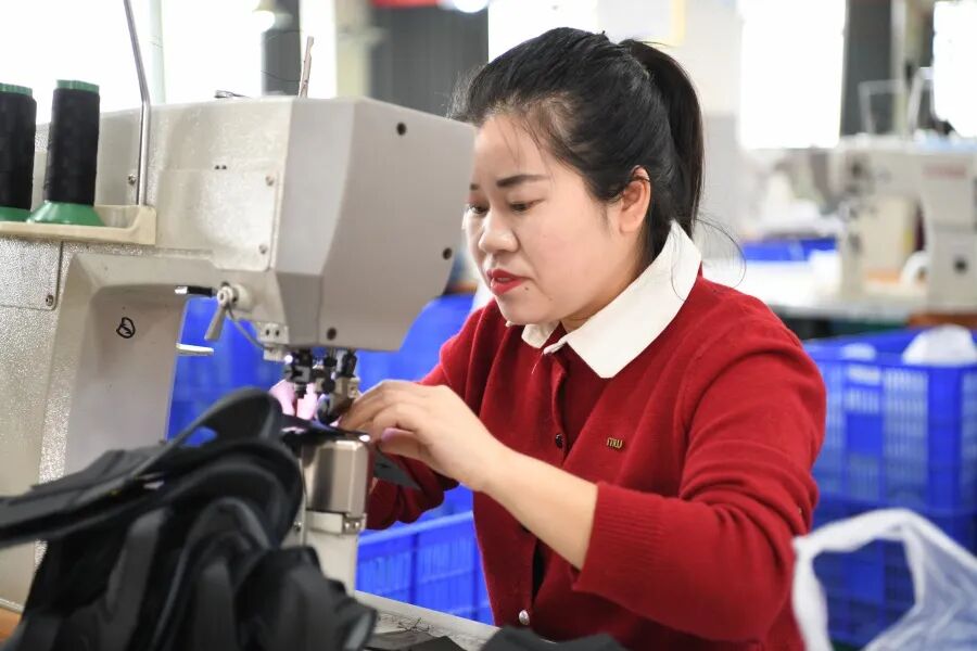 “以前的老设备操作起来很费劲,产量也不是很高。自从换了新设备之后,各种操作都有智能提示,自动剪线很方便,而且剪线很均匀,产品质量比以前提升了很多,现在一天干活比以前多了两倍,干活轻松多了,收入也涨了不少,现在一个月能拿到5000至6000的工资,真心觉得挺不错的。”余庆胜飞鞋业有限公司员工张修瑛说。