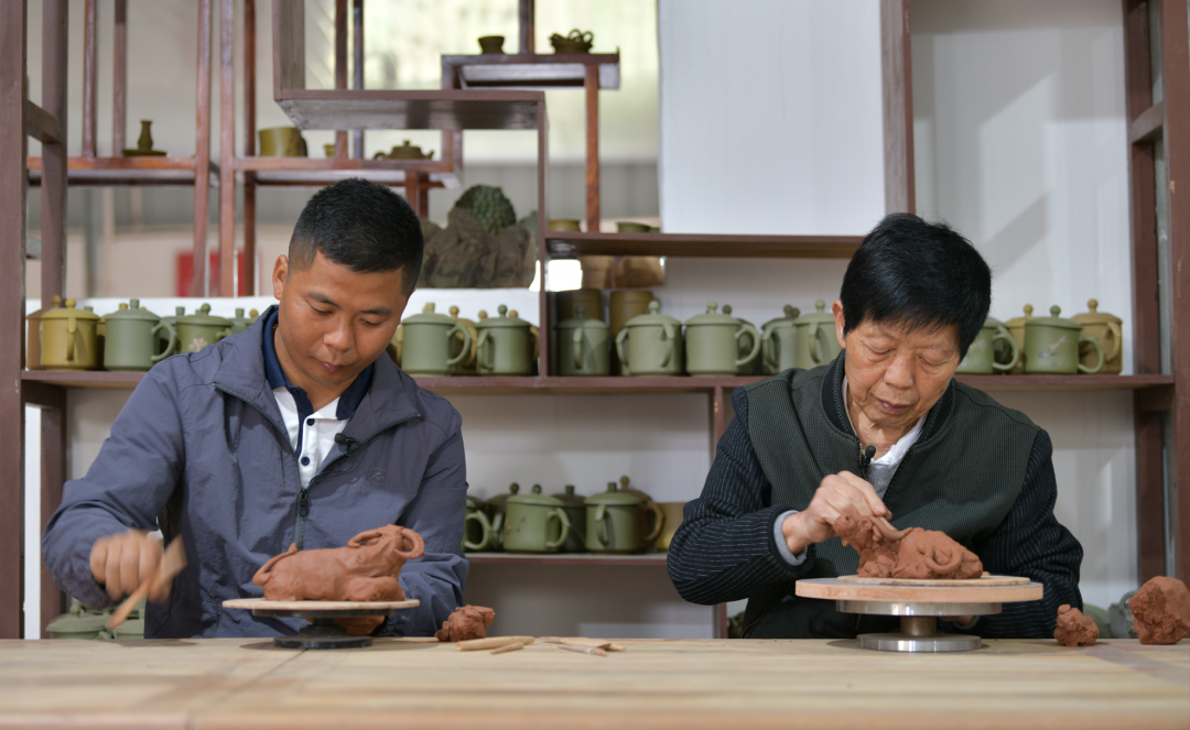 在泥牛黄的工作室内,黄泽富父子正因为一件作品争吵。