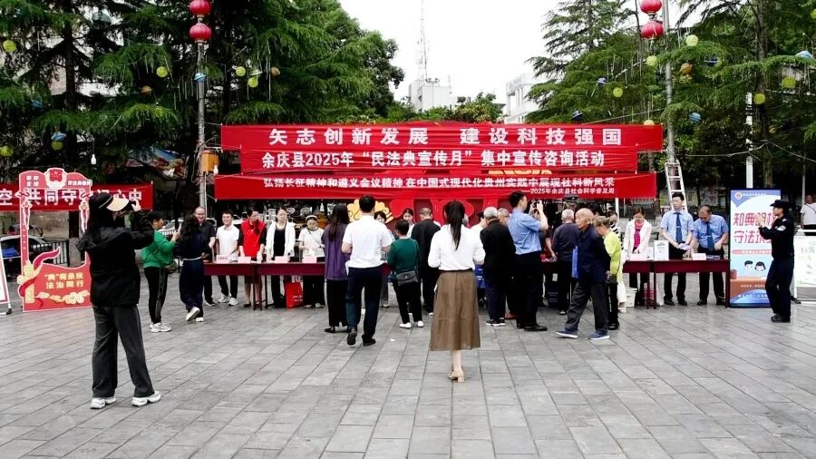 今年5月是第五个“民法典宣传月”,5月19日,余庆县在县城三角花园集中开展民法典宣传活动,通过多种形式推动民法典走到群众身边、走进群众心里。