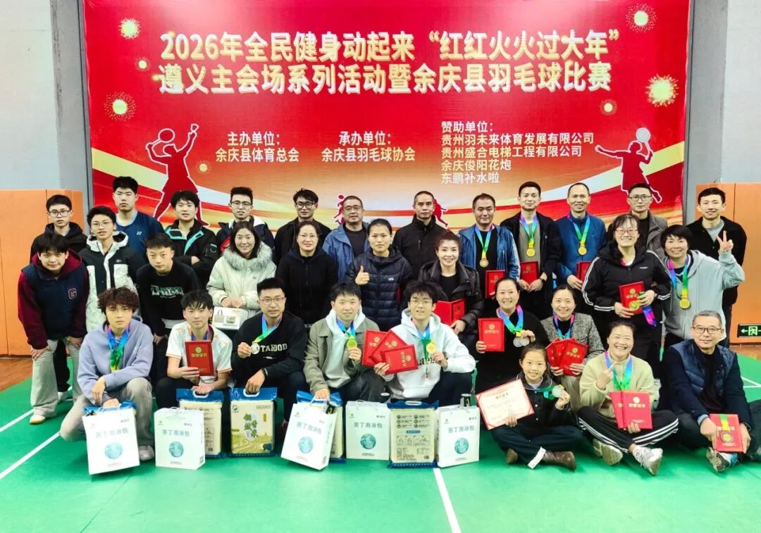2月25日至26日,2026年全民健身动起来“红红火火过大年”遵义主会场系列活动暨余庆县羽毛球比赛成功举办,吸引了全县各年龄段羽毛球爱好者踊跃参与。