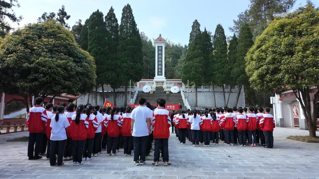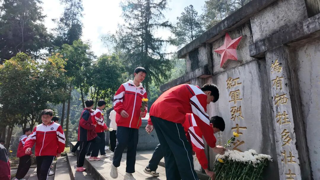 随后,师生整齐列队,依次敬献鲜花,置身烈士长眠之地,学生不再是课堂里的聆听者,而是历史现场的亲历者。