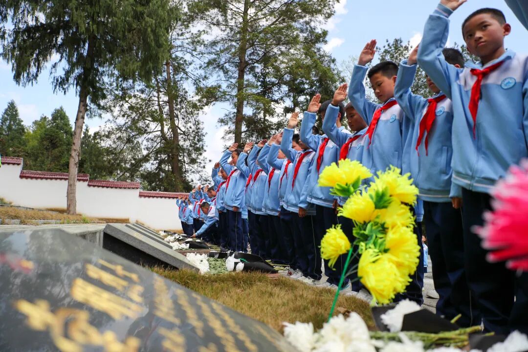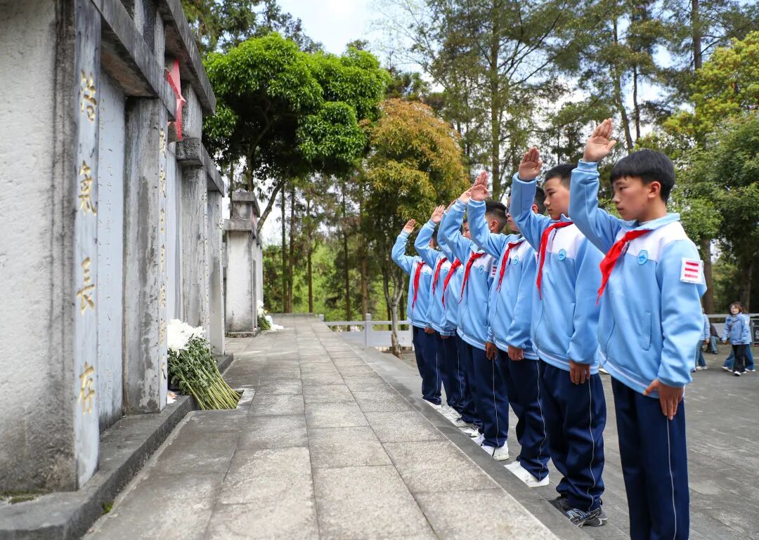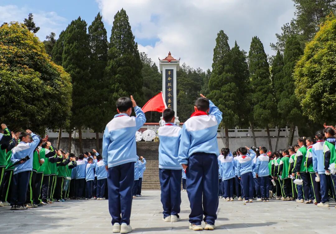 3月30日,余庆县天湖小学五年级全体师生走进红军烈士陵园,学生们肃立默哀、出队旗、行队礼、深情献词追思先烈伟绩、聆听烈士事迹、重温入队誓词、庄严呼号,用声音与行动传递追思,传承不朽的红色精神,让爱国主义教育于亲身体验间“入脑入心”。