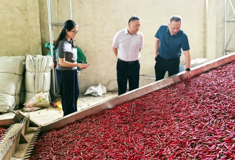 在魁龙村辣椒烘干厂,王镇飞实地察看生产线运行情况,与村集体经济负责人深入交流。他强调,要立足特色资源禀赋,做大做强辣椒精深加工产业,不断提升产品附加值,拓展销售渠道,切实把辣椒产业打造成群众“家门口”的增收稳定器,让更多群众共享产业发展红利。
