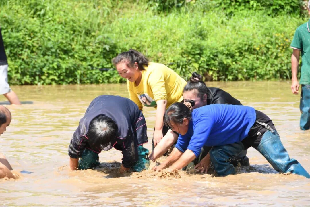 此外,活动还组织开展了“浑水摸鱼”“稻田拔河”“欢乐套圈”等多种趣味比赛,现场欢呼声、呐喊声此起彼伏,将活动气氛推向高潮。