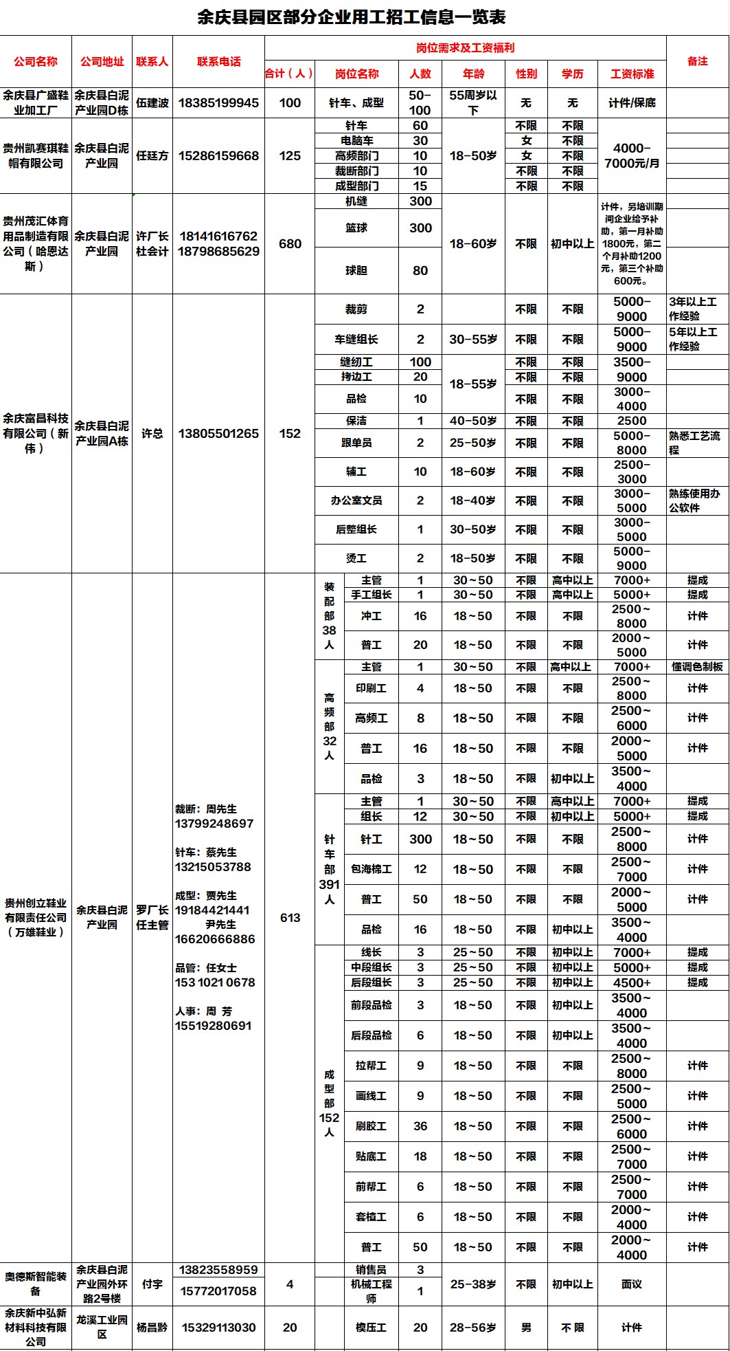 贵州余庆经开区还有大量企业招工,快来看看有没有你满意的岗位吧!